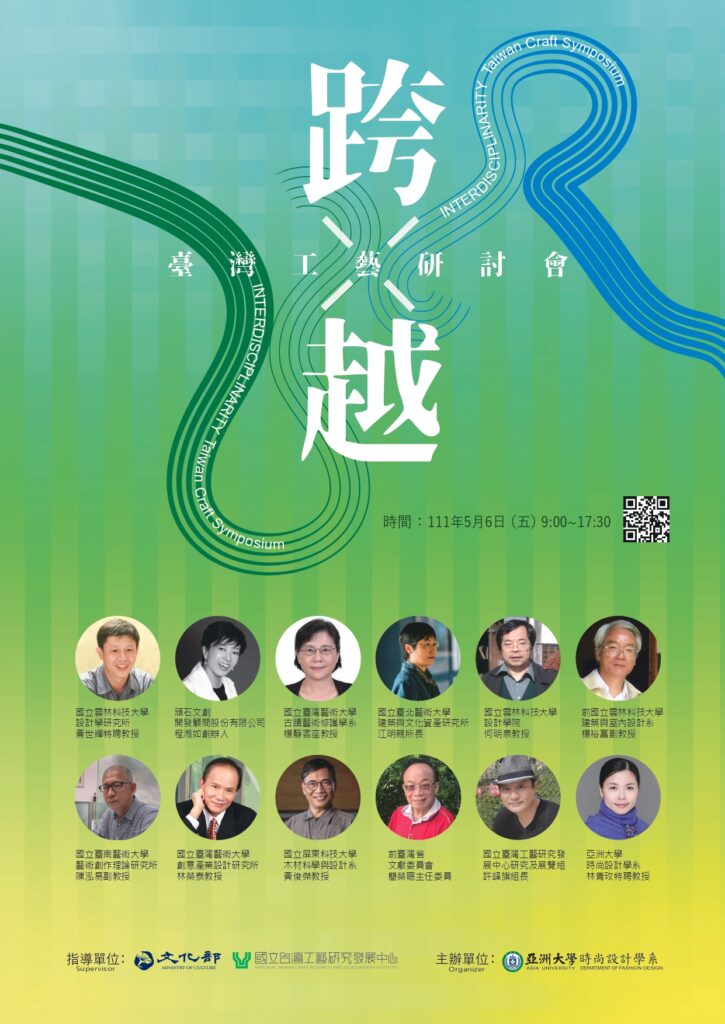 由文化部及國立臺灣工藝研究發展中心指導,亞洲大學時尚設計學系辦理之「跨✕越-臺灣工藝研討會」,以工藝跨領域結合經濟學、史學、美學及教育學等主題,邀請學界研究者及產業界、公部門代表等相關人士,就建構整體臺灣工藝知識體系,發展「臺灣工藝學」,分享彼此的研究、經驗與創見,共同討論交流。