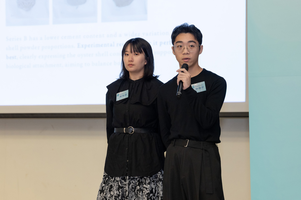 ▲國立臺灣科技大學設計系學生林劭宇、蔣佳穎分享作品創作理念。