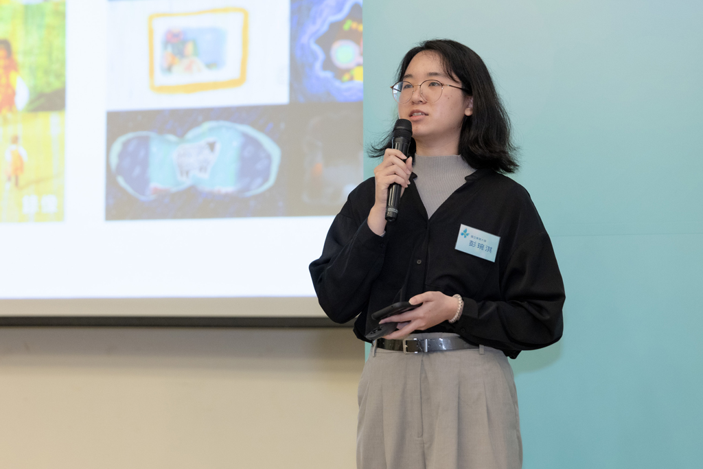 ▲國立東華大學藝術創意產業學系碩士班學生彭琬淇分享作品創作理念。