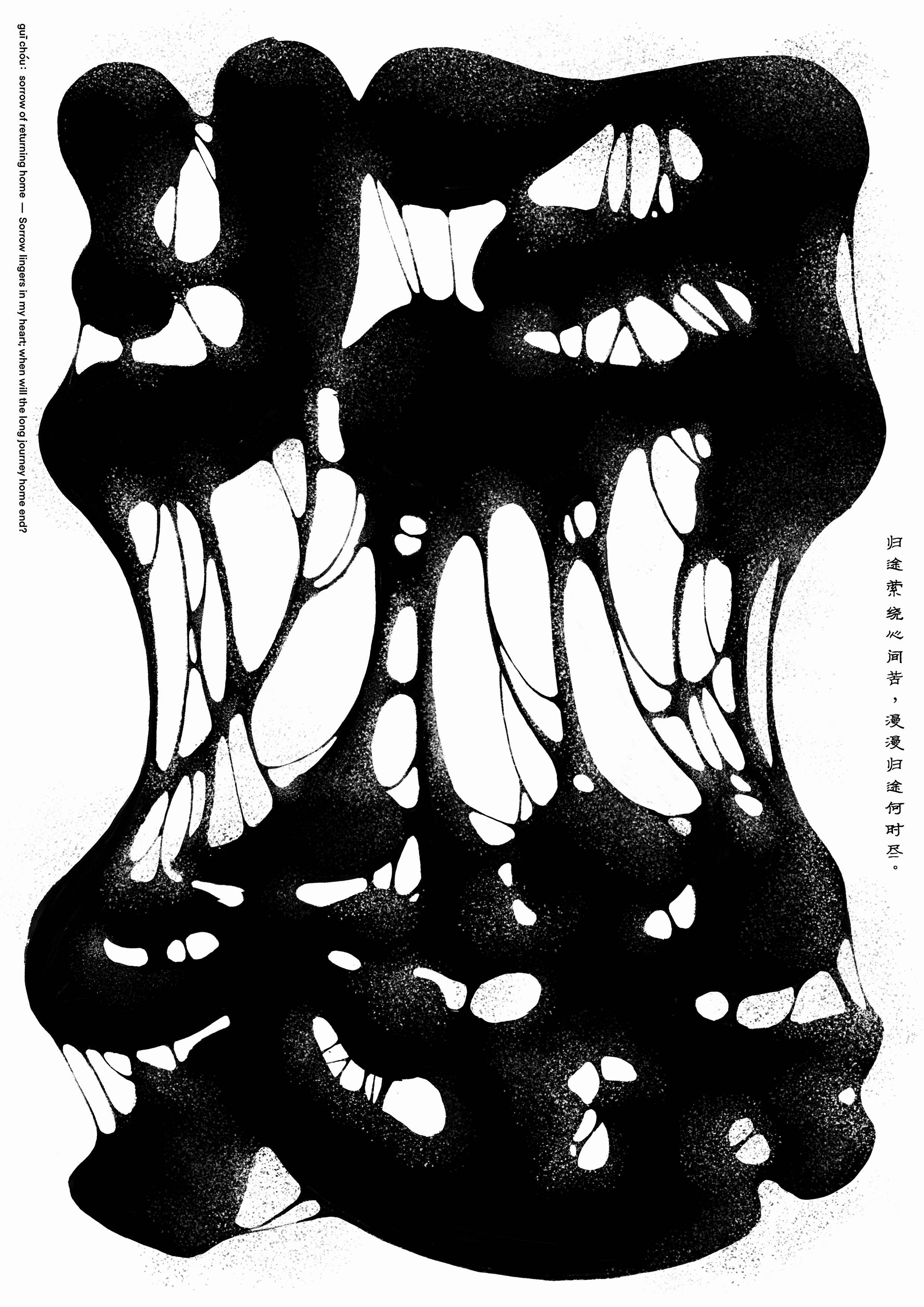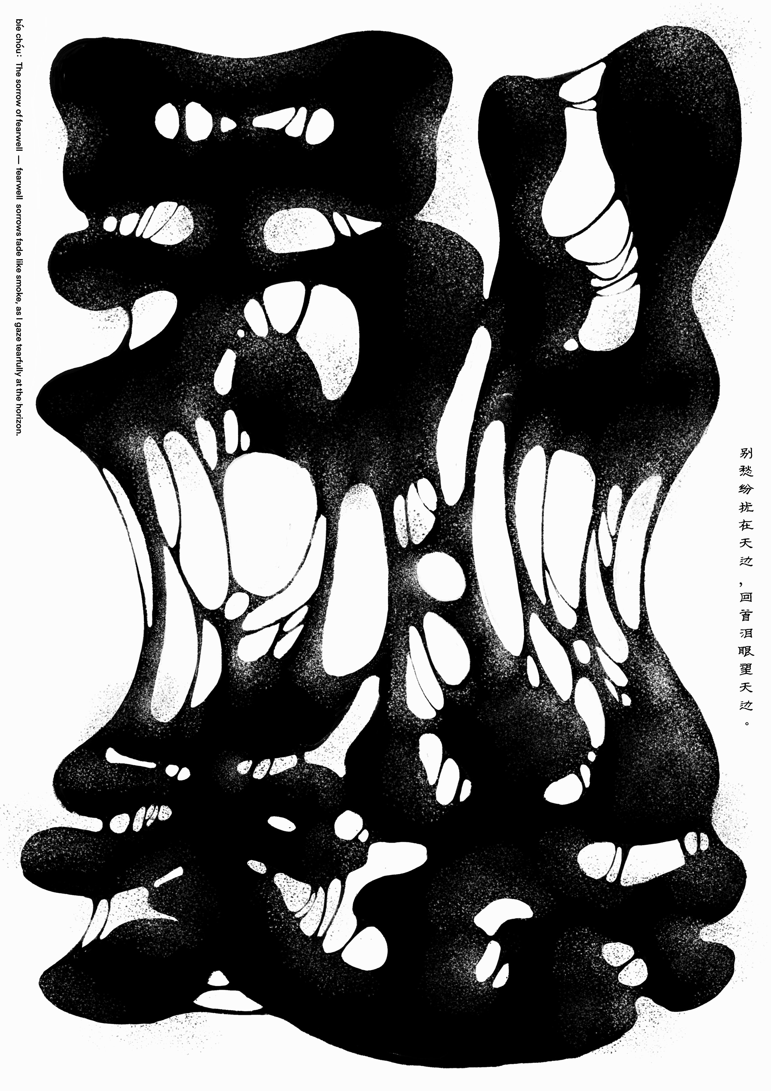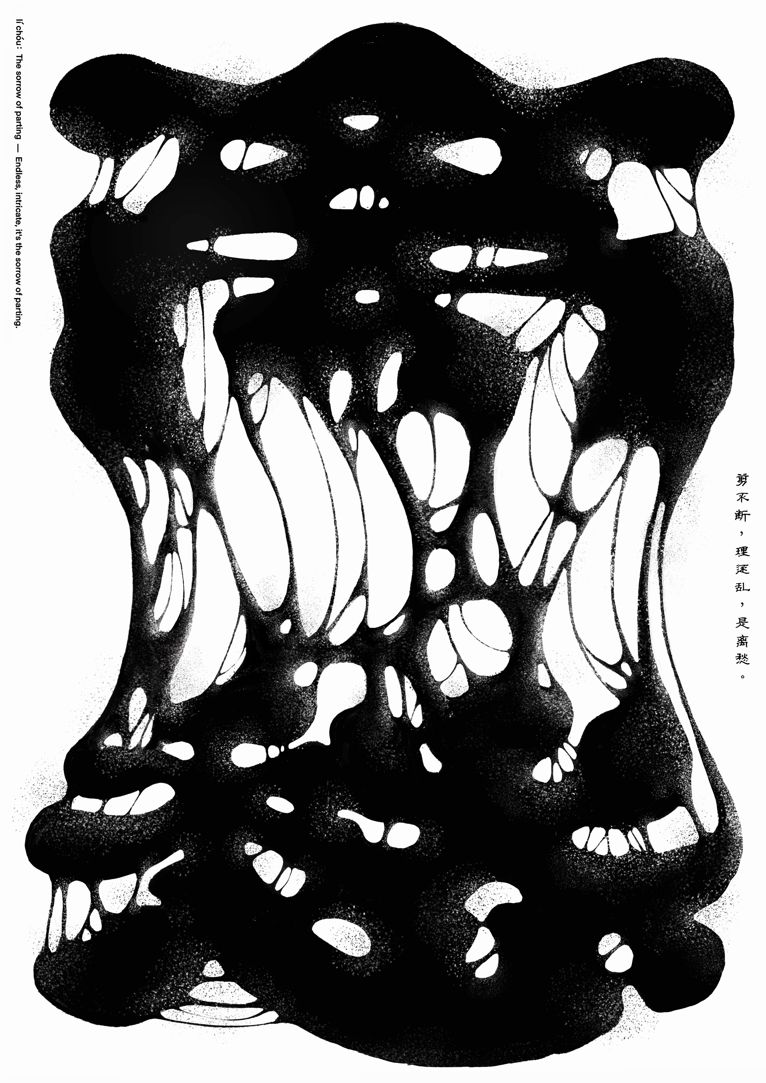 亞洲大學人工智慧博士學位學程陳郭益言學生穎創作作品「2024 憂愁三部曲詩歌展 2024 Sorrow Trilogy Poetry Show」,作品以「別愁、離愁、歸愁」為題,為山東大學舉辦的詩會活動,設計出一系列的視覺設計,融合手繪筆觸與詩意語彙,塑造纏綿、抽象的悲傷質感,呈現出藕斷絲連般的情緒結構,讓觀者於黑白之間感受各種無言的憂愁。本作品亦於114年獲得「2025 紐約藝術指導協會年度獎-Silver Cube」,並獲得本計畫第一等銀獎。