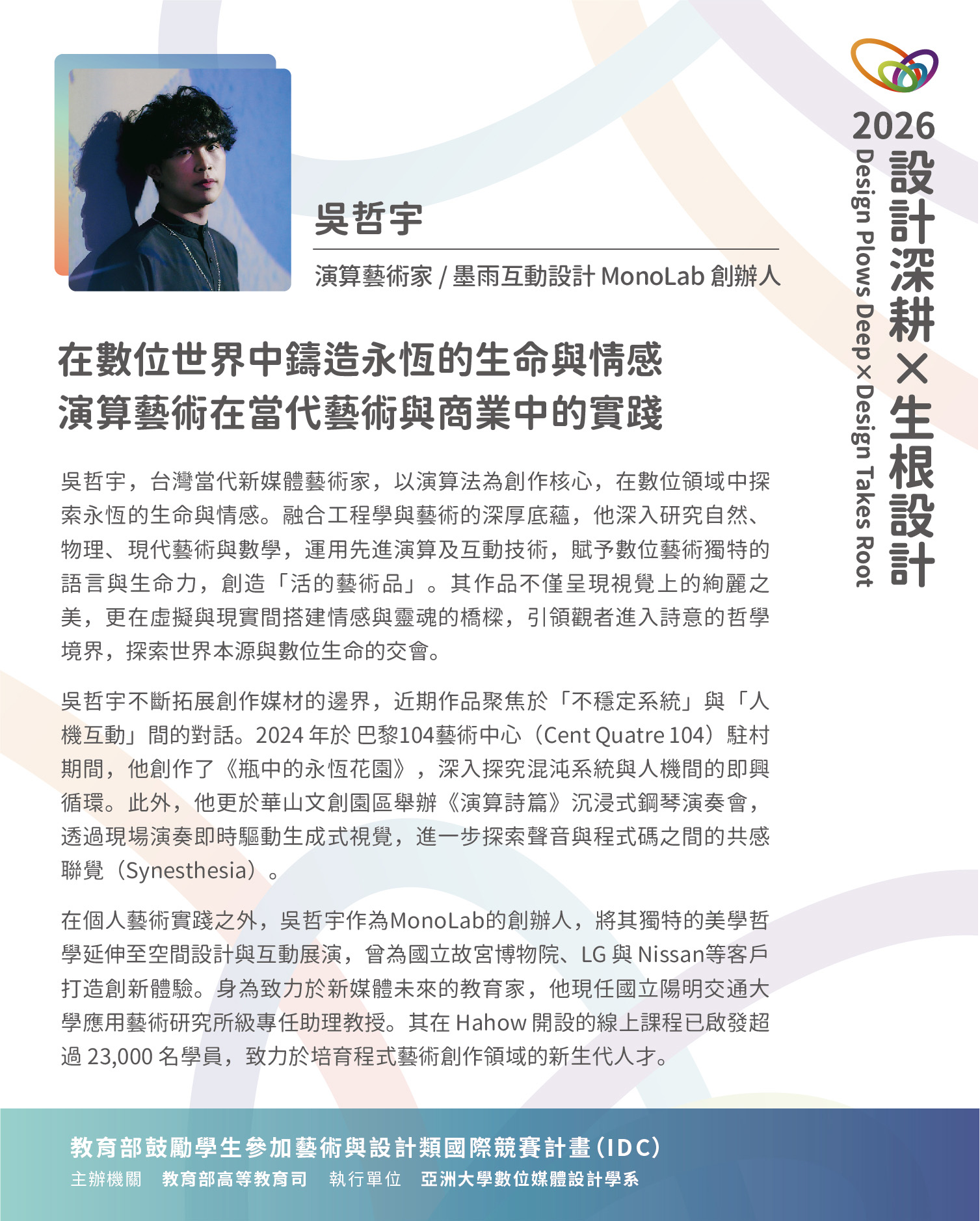 講者:演算藝術家 / 墨雨互動設計 MonoLab 創辦人-吳哲宇